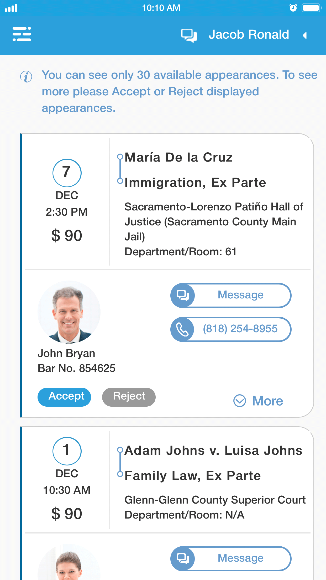 It takes only a couple of minutes to submit a case and find an attorney. Appearance attorneys can fill up their appearance calendar to the fullest and never waste a day in court with only one or two appearances. Fascinating super-productivity awaits you!