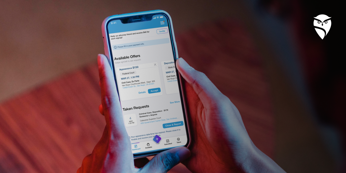 To join our nationwide network of court appearance attorneys, get our mobile application from the Apple Store or Google Play. You can also create an account using our website.