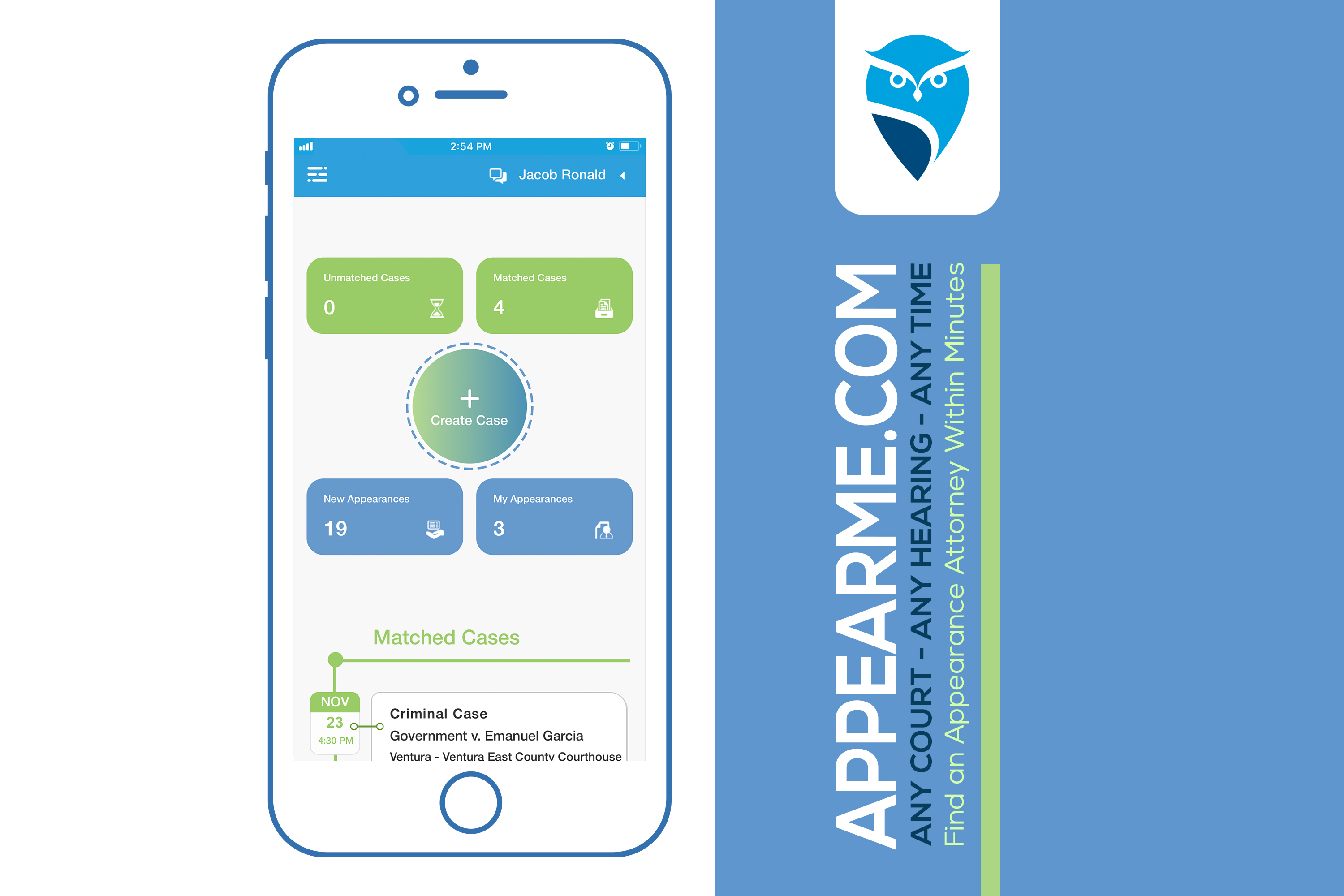 No long waits, no endless phone calls, no payment problems, no more half-filled days and time wasted in courts. Attorneys of record: sign up, submit your hearing, get matched and you are done. Appearance attorneys: sign up, accept appearance offers, appear and you are done. The fast and secure website works wonders for those who know the pain of finding an appearance attorney. Whether your hearing is a week from now or in an hour, the software and the app work together to find you help in real time.